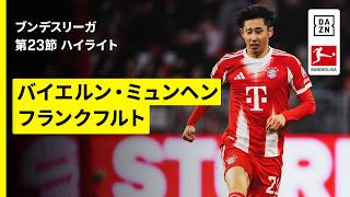 伊藤はバイエルンのDFラインの一角として、フランクフルトの鋭い攻撃に対応した。