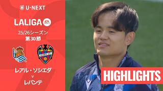 ラ・リーガ第30節、レアル・ソシエダ対レバンテのフルハイライト。久保建英はベンチ入りしたが出場なし。ソシエダがセットプレーからの先制とカウンターからの追加点で2-0の完勝を収めた。