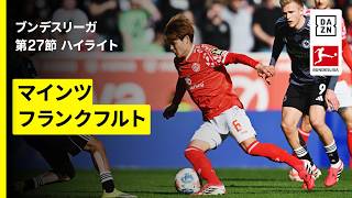 ブンデスリーガ第27節、マインツ対フランクフルト。佐野海舟と堂安律の日本人対決が実現した一戦で、佐野海舟が2得点に直接絡む活躍を見せたマインツが2-1で勝利。残留に向けて大きな勝ち点3を手にした。