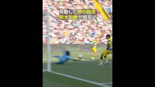- [0:02] 難しいバウンドにも素早く反応した鈴木彩艶、体を横に投げ出しながら指先でボールに触れる